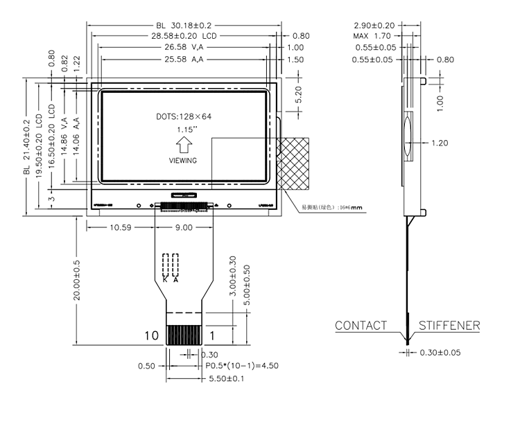 Štai ENH-DG128064-45 juodojo fono lcd, 128x64 taškinė matrica, DFSTN, su baltu simboliu, FPC 10 PIN jungtis, COG modulis, ST7567S valdiklis, su baltos spalvos LED apšvietimu. "Shenzhen" Enrich Electronics Co., Ltd galėjo pritaikyti LCD " pagal jūsų reikalavimą.